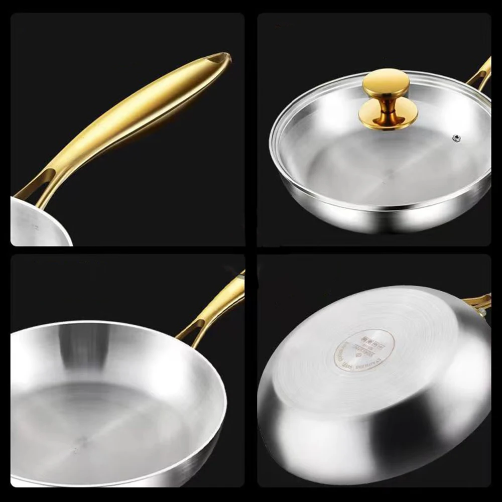 • 316 Stainless Steel Frying Pan Non Stick Pan Flat Bottomed Pan Household Uncoated Steak Wok Pan Gas Induction Cooker Universal