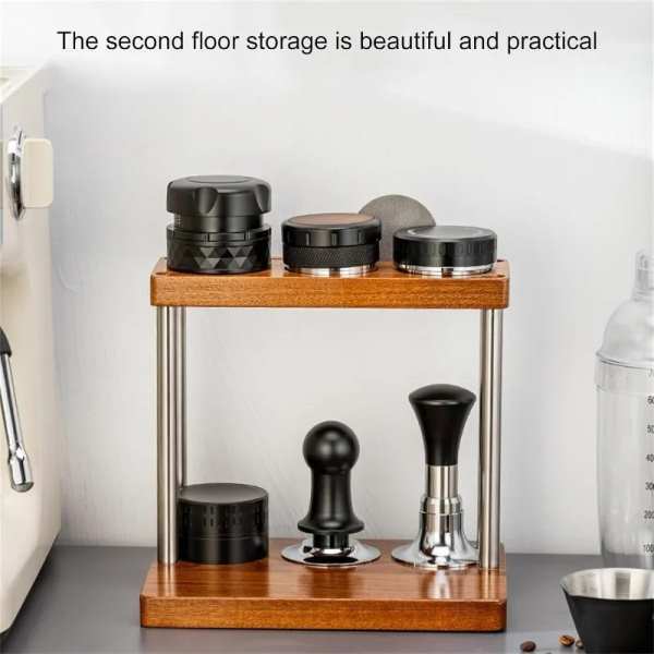 1PCS Solid Wood Coffee Organizers Stand Double Layer Coffee Station Shelf Espresso Machine Accessories Space Saving Home Use