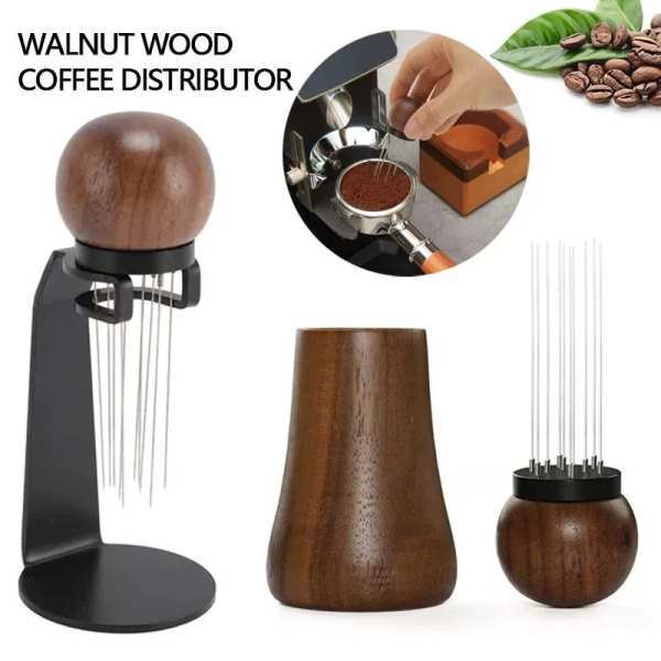 1PCS Coffee Distributor Tool Espresso Distributor Stirrer Walnut Wood Coffee Cloth Powder Needle Household Cafe Shop Barista Use