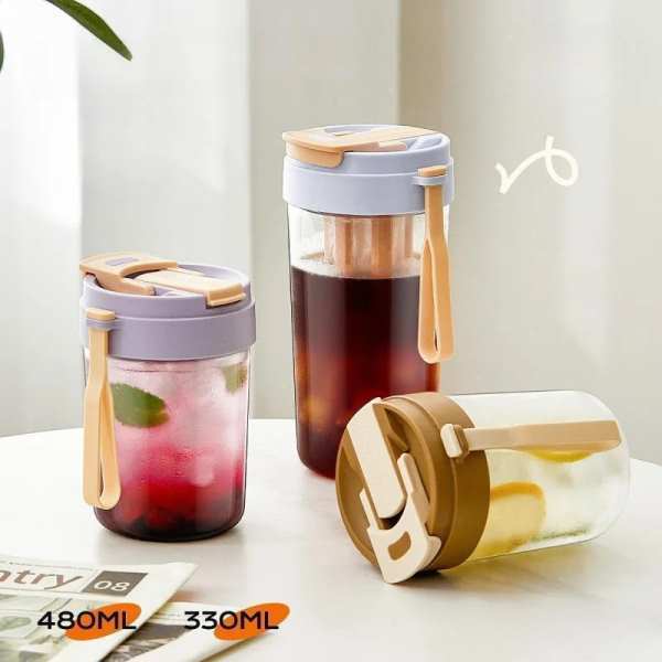 480ml Portable Cold Brew Coffee Cup Reusable Coffee Pot with Fine Mesh Filter Travel Cold Brew Coffee Cup Home Picnic Use
