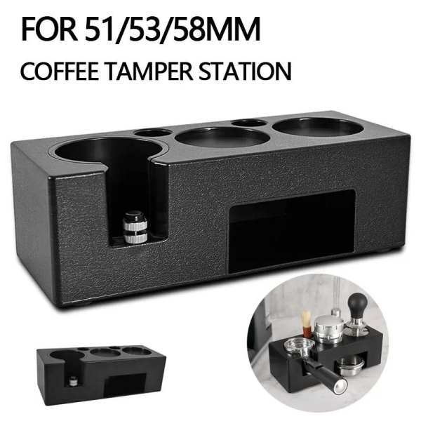 51MM Espresso Tamper Station Multifunction Coffee Tamper Stand with Knock Box Coffee Bar Accessory Storage Barista Tool