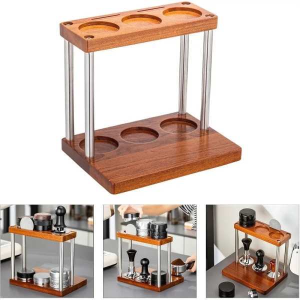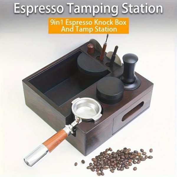 Espresso Tamping Station 3-in-1 Espresso Knock Box with Non-Slip Base Coffee Tamper Holder Multifunctional Use Home Barista Tool