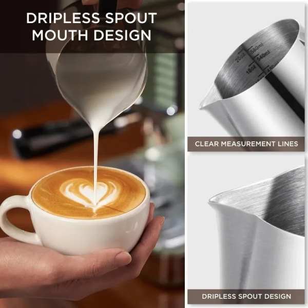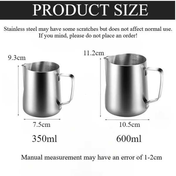 • 350 Stainless Steel Milk Frothing Pitcher Coffee Cappuccino Latte Art Cup with Clear Scale Espresso Machine Accessories