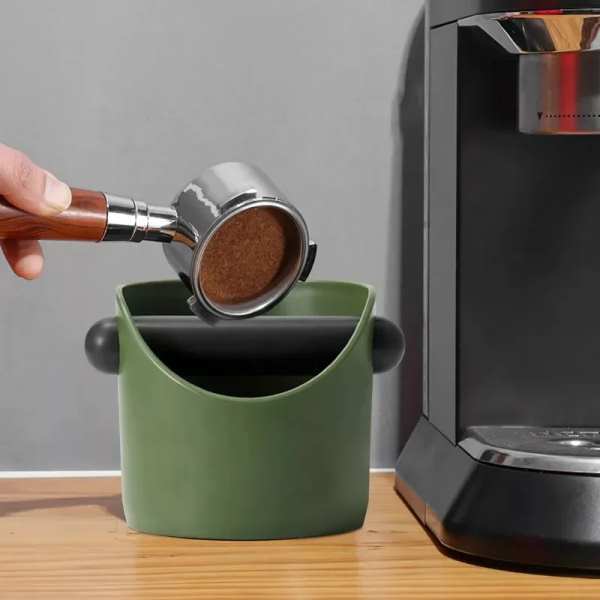 • Mini Coffee Knock Boxs Thickened Plastic Round Coffee Knock Bucket Non-Slip Detachable Grind Espresso Trash Bin Home Cafe Use