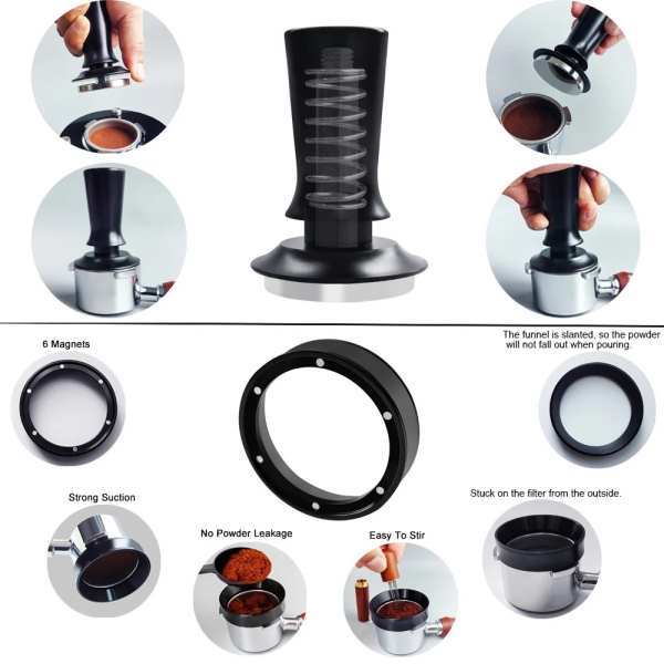 • Set Coffee Tampers Tools with WDT Stirrer Tool, Puck Screen, Dosing Funnel, Cleaning Brush