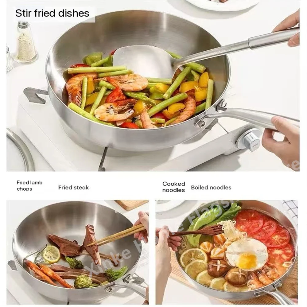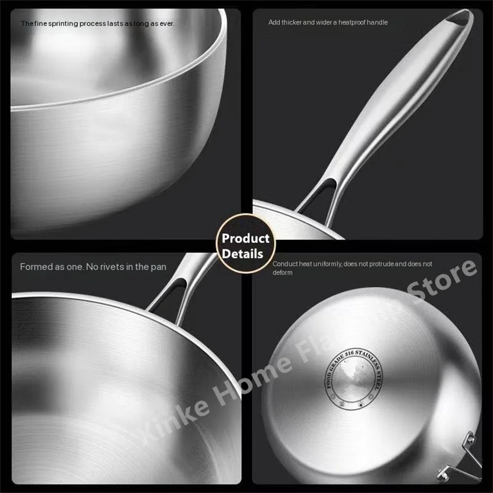• 316 Stainless Steel Frying Pan Deepened Wok Uncoated NonStick Skillets Gas Stove Induction Cooker Universal Pan Kitchen Cookware
