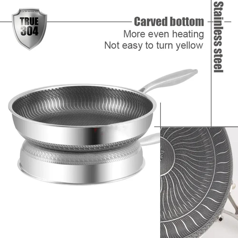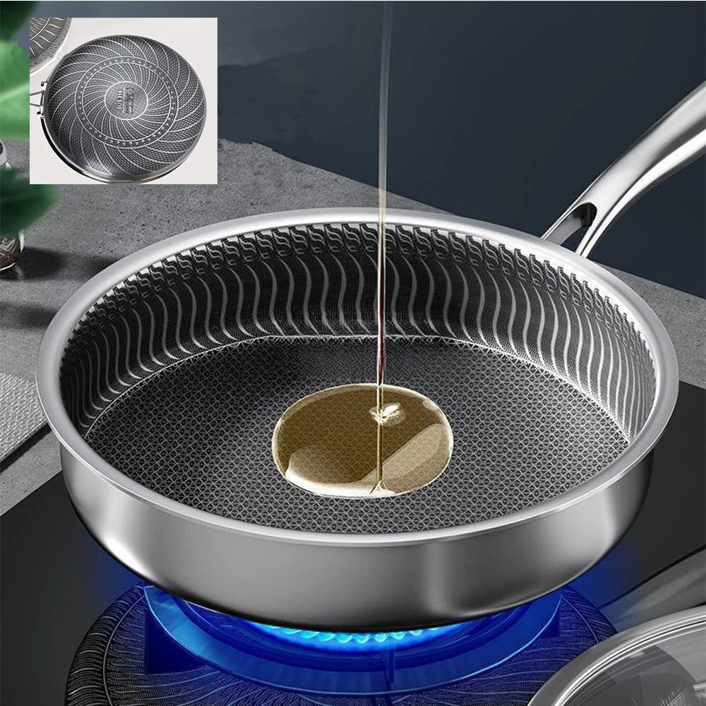 Stainless Steel Honeycomb Frying Pan NonStick Pan Steak Cooking Flat Bottom Wok Induction Cooker Universal Kitchen Cookware. It is a high - quality product with an innovative design.