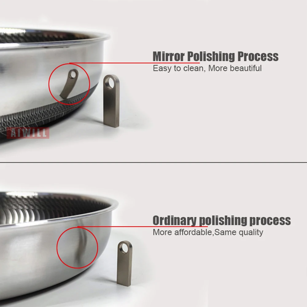 • 316 Stainless Steel Honeycomb Frying Pan Non-Stick Pan Steak Cooking Flat Bottom Wok Induction Cooker Universal Kitchen Cookware