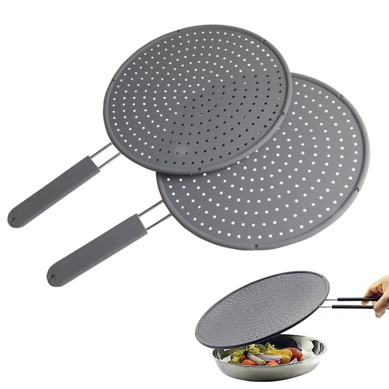 Silicone Kitchen Splatter Screen with Handle Heat-resisting Oil Splash Guard Drain Board Cover Kitchen Frying Pan Lid