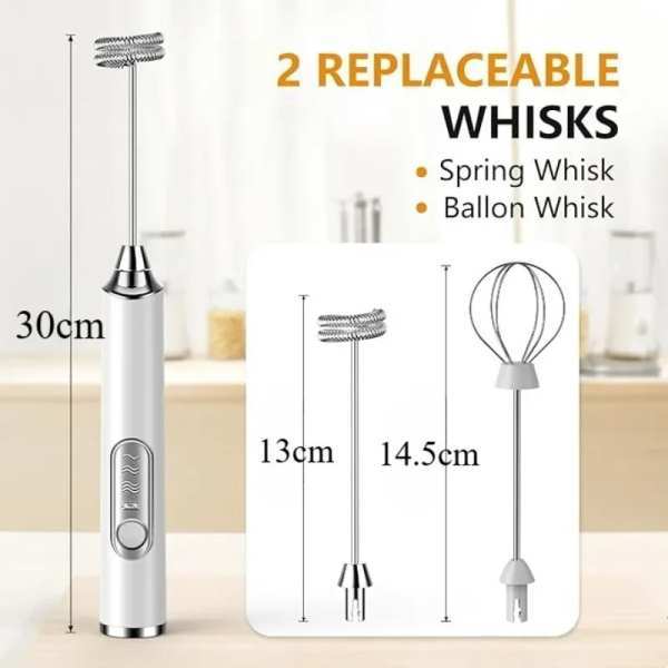 • 1pcs Coffee Milk Frother Blender 3 Speeds Adjustable Handheld Milk Frother Stainless Steel Electric Milk Frother USB Recharge