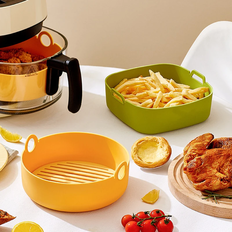 • Silicone Pizza Fried Chicken Airfryer Easy To Clean Basket Air Fryers Oven Baking Tray Reusable Airfryer Pan Liner Accessories